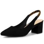 uxcell バックストラップ パンプス スリングバック ポインテッドト チャンキーヒール レディース ブラック 26.5cm