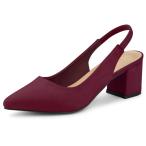 uxcell Allegra K バックストラップ パンプス スリングバック ポインテッドト チャンキーヒール レディース ブルゴーニュ 23.5cm