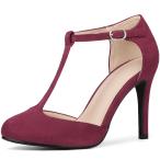 uxcell Perphy パンプス ハイヒールサンダル メアリージェーン ピンヒール Tストラップ レディース ブルゴーニュ 25.5cm