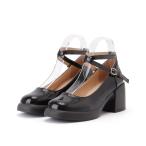 パンプス レザー調 厚底 ストラップ ボリューム パンプス