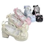 レディース ロリィタ靴 ストラップパンプス リボン飾り 蝶結び レース ロリータ 履き心地 美脚 ローヒール 履きやすい かわいい 甘ロリ