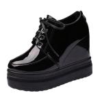 ショートブーツ インヒール エナメル 11.5cmアップ 厚底靴 女性 パンプス レディース レースアップ オシャレ 快適 滑りにくい