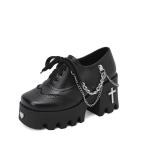 22.5-28.0cm コスプレ靴 厚底ゴスロリパンプス ロリータ レディース レースアップ リベット チェーン ラウンドトゥ 地雷 原宿