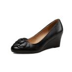 走れるパンプス レディース 花 ウェッジ ハイヒール スムース 本革 衝撃吸収 スリッポン 防滑 コーデ 美脚 普段使い パーティー 外出
