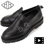ダブルエイチ レザーシューズ メンズ フンシャルカーフレザー Uチップ ダブルモンクストラップ 干場氏別注モデル WH WHS-0322 WH0 BLK 返品交換不可