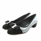 サルヴァトーレフェラガモ Salvatore Ferragamo ヴァラリボン パンプス ヒール バイカラー 6.5 シルバー色 黒 ブラック 16368 /AN14