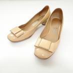 サルヴァトーレフェラガモ Salvatore Ferragamo ヴァラ パンプス リボン エナメル レザー プレーントゥ ヒール 7 B 約24.5cm 黒