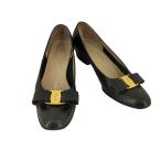 中古 サルヴァトーレフェラガモ パンプス 5 C レザー ブラック ゴールド金具 JPサイズ約22cm ヒール約4cm シューズ 靴 レディース 女性