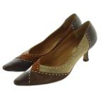 サルヴァトーレフェラガモ パンプス ポインテッドトゥ ステッチデザイン パッチワーク 5 22.5cm 茶 ブラウン 96675 レディース
