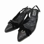 サルヴァトーレフェラガモ パンプス ポインテッドトゥ コーンヒール ローヒール ガンチーニ リボン 5.5 22.9cm 黒 89466 レディース