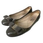 サルヴァトーレフェラガモ Salvatore Ferragamo ヴァラリボン フラットシューズ パンプス ラウンドトゥ 8C グリーン