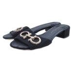 サルヴァトーレフェラガモ Salvatore Ferragamo ガンチーニ サンダル ビジュー ブラック 6D 23.5cm ■GY62 レディース