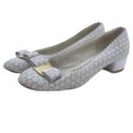 【中古】美品 Salvatore Ferragamo サルヴァトーレフェラガモ ヴァラリボン ラメ グリッター パンプス 5D 22.5cm相当 シルバーカラー レディース Luxs ブランド古着のリュクス