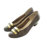 【美品】サルヴァトーレ フェラガモ Salvatore Ferragamo パンプス ヒール ガンチーニ金具 カーフレザー シューズ 靴 レディース イタリア製 4 1/2C(22cm相当) ダークブラウン【中古】