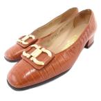 サルヴァトーレフェラガモ Salvatore Ferragamo ガンチーニバックル パンプス ローファー ヒール クロコ型押し レザー 4.5 ブラウン