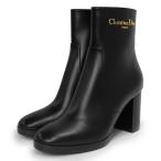 (未使用 展示品)クリスチャンディオール Christian Dior D-Town ヒール ショート ブーツ シューズ 靴 #37.5 24.5cm レザー ブラック ゴールド金具 KDT112SCF