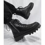 ブーツ 「Alfred Alex」ボリュームハイソール サイドジップレースアップブーツ メンズ レディース