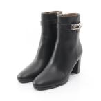 【名東】エルメス ショートブーツ ジェフ 黒 シルバー金具 レザー レディース シューズ 女 靴