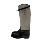 HERMES◆ジャンピングブーツ/ロング/38/GRY/キャンバス/ロゴ
