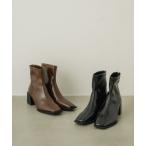 ブーティーレディーススクエアトゥバックジップ太ヒールチャンキーヒールミドルヒール裏起毛フェイクレザー防水歩きやすい秋冬靴