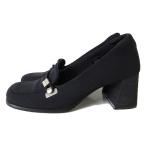 プラダ PRADA ローファー パンプス ナイロン ロゴ 金具 チャンキーヒール 37.5 黒 ブラック 24.5cm くつ 靴 シューズ レディース