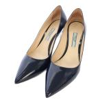 プラダ PRADA パンプス シューズ ポインテッドトゥ ベルト エナメル 35 黒 ブラック レディース