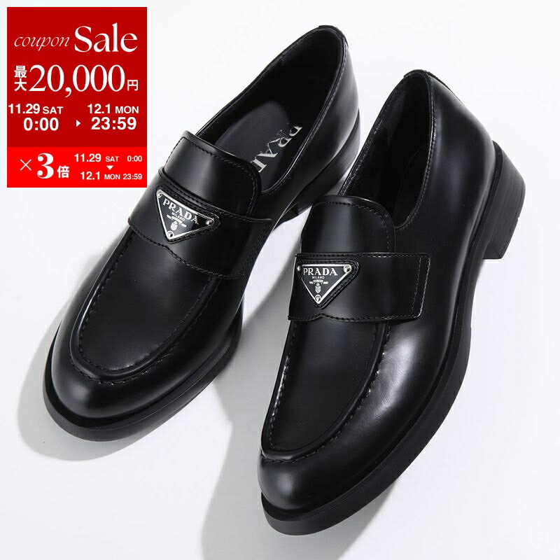 【最大2万円OFFクーポン対象・11/29~12/1限定】PRADA プラダ ローファー 1D329N 055 レディース ブラッシュドレザー トライアングルロゴ シューズ 靴 F0002/NERO