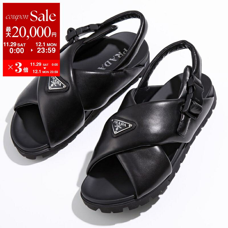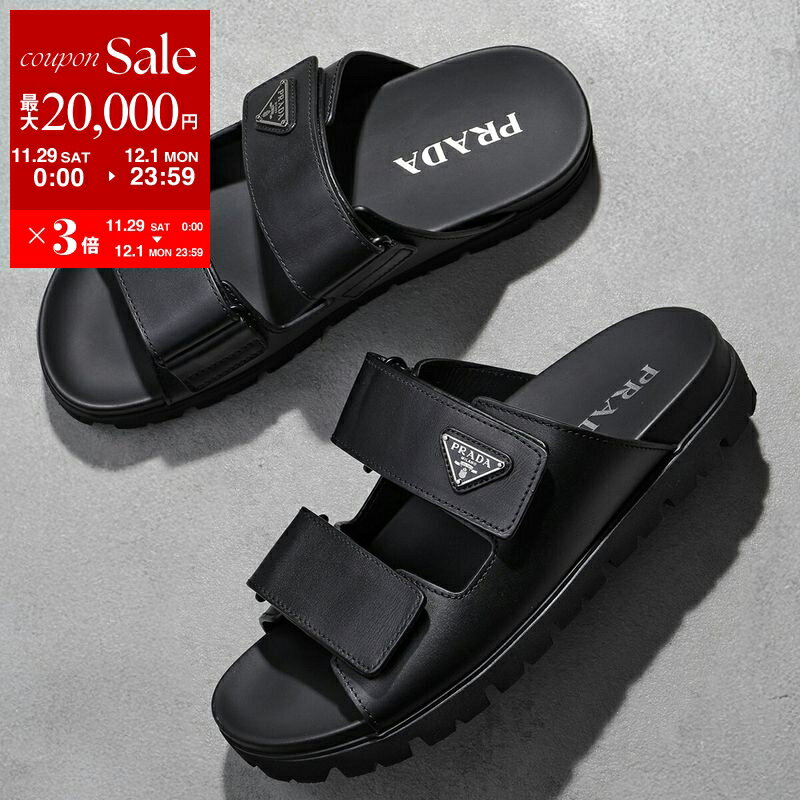 【最大2万円OFFクーポン対象・11/29~12/1限定】PRADA プラダ クリスクロスサンダル 2X3121 3LEM メンズ レザー トライアングルロゴ シューズ 靴 F0002/NERO
