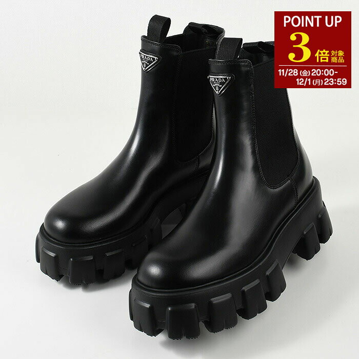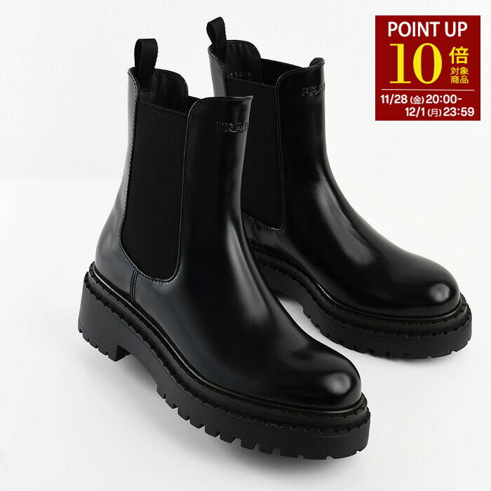 【P3倍対象商品】PRADA プラダ ブーツ 靴 1T256NB4L モノリス ブラッシュドレザー チェルシーブーツ レディース ブラック 黒 サイドゴア 厚底
