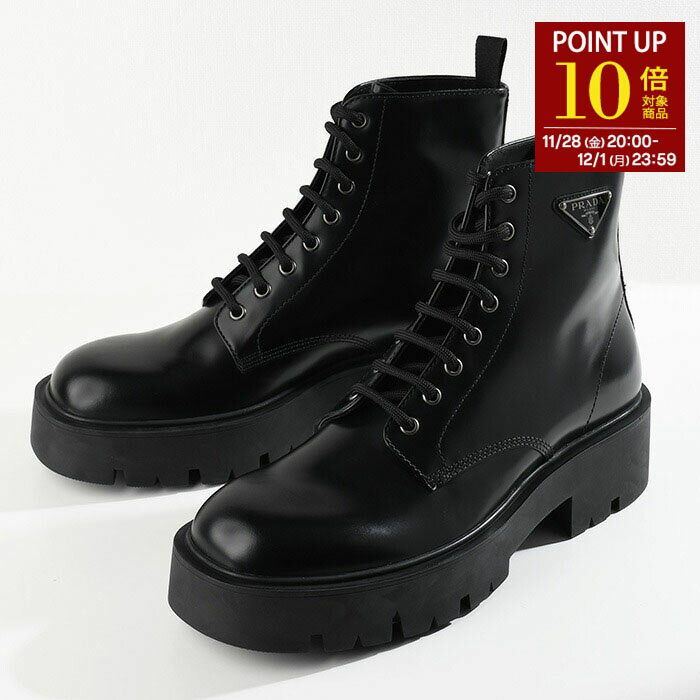 【P10倍対象商品】PRADA プラダ ブーツ シューズ 2TG242B4L ブラッシュドレザー コンバットブーツ メンズ ブラック F0002 黒 レースアップ 厚底 チャンキーソール