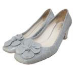 プラダ PRADA フラワー装飾 パンプス レザー チャンキーヒール 靴 大きいサイズ 39.5 約26.5cm グレー /X レディース