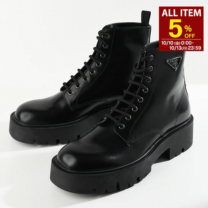 【5%OFFクーポン】PRADA プラダ ブーツ シューズ 2TG242B4L ブラッシュドレザー コンバットブーツ メンズ ブラック F0002 黒 レースアップ 厚底 チャンキーソール
