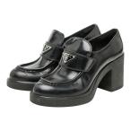 プラダ 三角ロゴプレート ハイヒール ローファー サイズ38 1/2 ブラック レザー レディース PRADA 【中古】