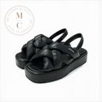 プラダ PRADA サンダル 靴 シューズ レザー ブラック 黒 ロゴ プラットフォーム パデッドナッパ