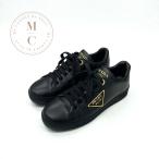 プラダ PRADA スニーカー 靴 シューズ レザー ブラック 黒 ゴールド トライアングルロゴ