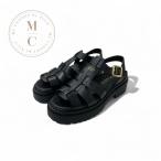 プラダ PRADA サンダル 靴 シューズ レザー ブラック 黒 ゴールド ロゴ ストラップ