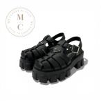 プラダ PRADA モノリス サンダル 靴 シューズ ラバー ブラック 黒 ストラップ トライアングルロゴ