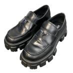 プラダ PRADA モノリスブラッシュドレザーローファー ローファー ブラック サイズ:5 1/2 (24.5cm)