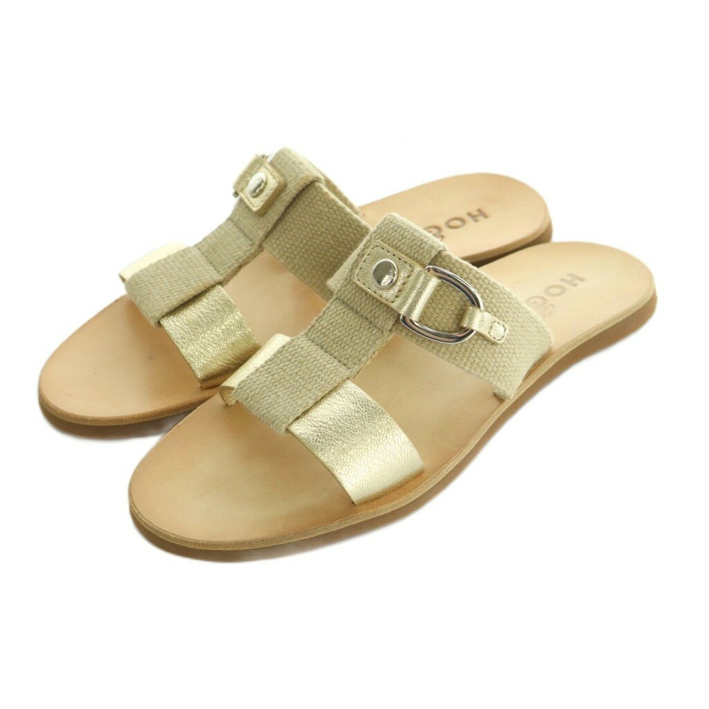 【中古】ホーガン HOGAN フラットサンダル 37 23.5cm-24.0cm ベージュ ゴールド色 /MI ■OS レディース 【ベクトル 古着】 250819