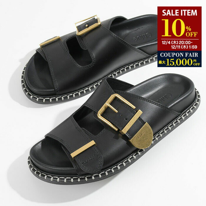 【10%OFF対象商品】CHLOE クロエ スライドサンダル シューズ REBECCA CHC24S981D1 レディース 黒 BLACK ブラック フラットサンダル バックル ゴールド 春夏