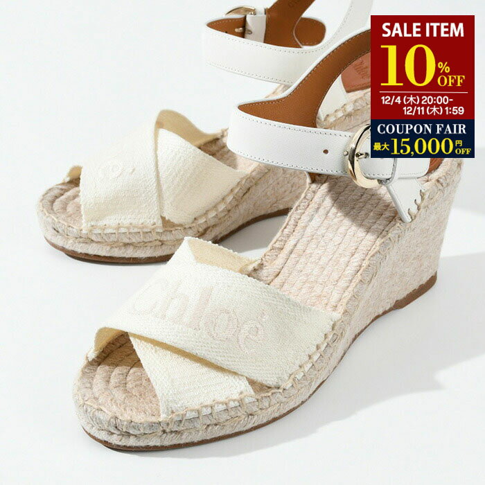 【10%OFF対象商品】CHLOE クロエ サンダル シューズ ウェッジサンダル アンクルストラップ CHC24S995FU レディース ホワイト 白 レザー ラバー オープントゥ 刺しゅう 春夏