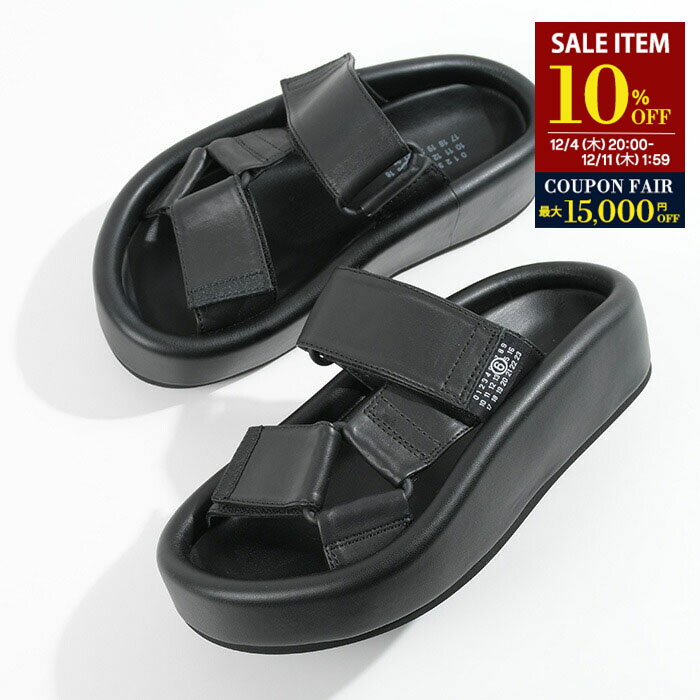 【10%OFF対象商品】MM6 MAISON MARGIELA エムエムシックス メゾン マルジェラ サンダル シューズ プラットフォーム ウェビングスリッポンサンダル S59WP0206 P6383 レディース ブラック ロゴ スリッポン