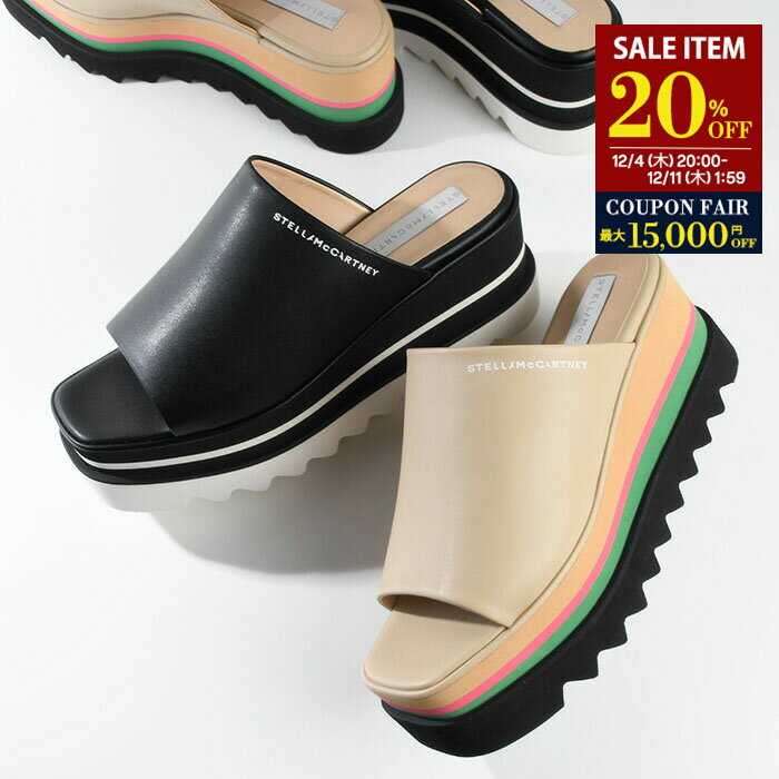 【20%OFF対象商品】STELLA McCARTNEY ステラ マッカートニー 靴 サンダル スニークエリス プラットフォーム ミュール 810169KP027 レディース ブラック ベージュ ロゴ スクエア