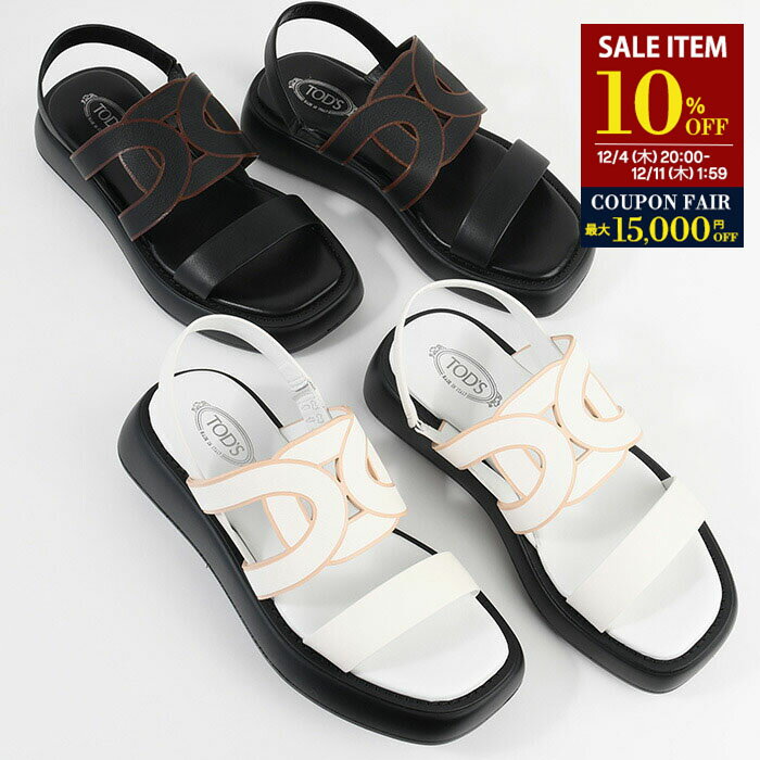 【10%OFF対象商品】TOD'S トッズ サンダル カットアウトロゴサンダル XXW11K0IF10MID レディース ブラック ホワイト 春夏 ロゴ 0717st2