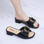 レディース ミュール ビーチサンダル つっかけ スリッパ 太めヒール カジュアルシューズ コンフォート ウォーキング 低めヒール 夏 おしゃれ女子靴