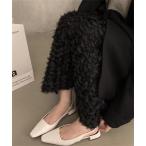 サンダル ツイード柄 シースルー ポインテッドトゥ ストラップ ミュール サンダル レディース