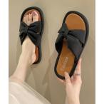 サンダル 大人かわいいリボンモチーフスクエアトゥミュールサンダル レディース
