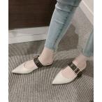 サンダル スタッズ ベルト ストラップ ポインテッドトゥ フラット ミュール サンダル レディース