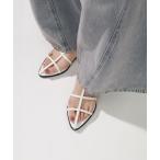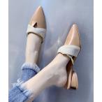 サンダル 異素材 配色 メタルストラップ ポインテッドトゥ ミュール サンダル レディース
