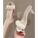 サンダル スクエアトゥ チュール クリア ヒール サンダル レディース